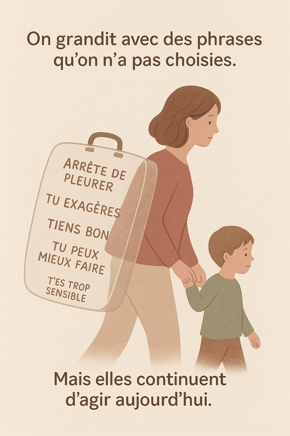 Aujourd’hui, quand ton enfant pleure fort, ça te serre à l’intérieur, tu voudrais que ça s’arrête… mais ce n’est pas lui qui t’énerve, c’est l’histoire qu’on t’a apprise.